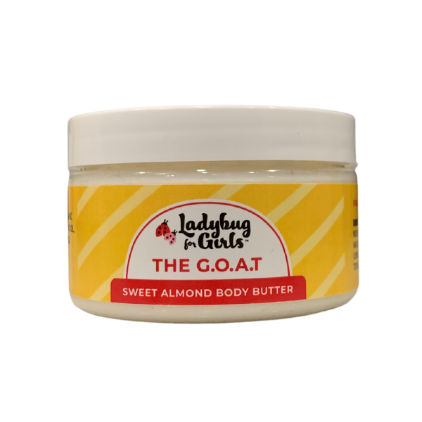 Our Mom’s #1 choice for little ones delicate skin. This rich, creamy body butter is a must have for the 'tiny' athlete in your life. Our G.O.A.T. (Greatest of All Time) Sweet Almond Body Butter is specifically formulated to deeply moisturize sensitive to normal skin. Made with simple, natural ingredients to soothe skin irritations and moisturizes for a soft, silky smooth feeling that leaves skin hydrated and smelling great. Free of parabens, propylene glycol, and petroleum based ingredients.